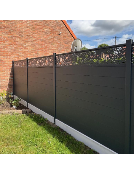 Cette plaque de soubassement 180 X 20 cm est adaptée pour une pose de clôture en composite.